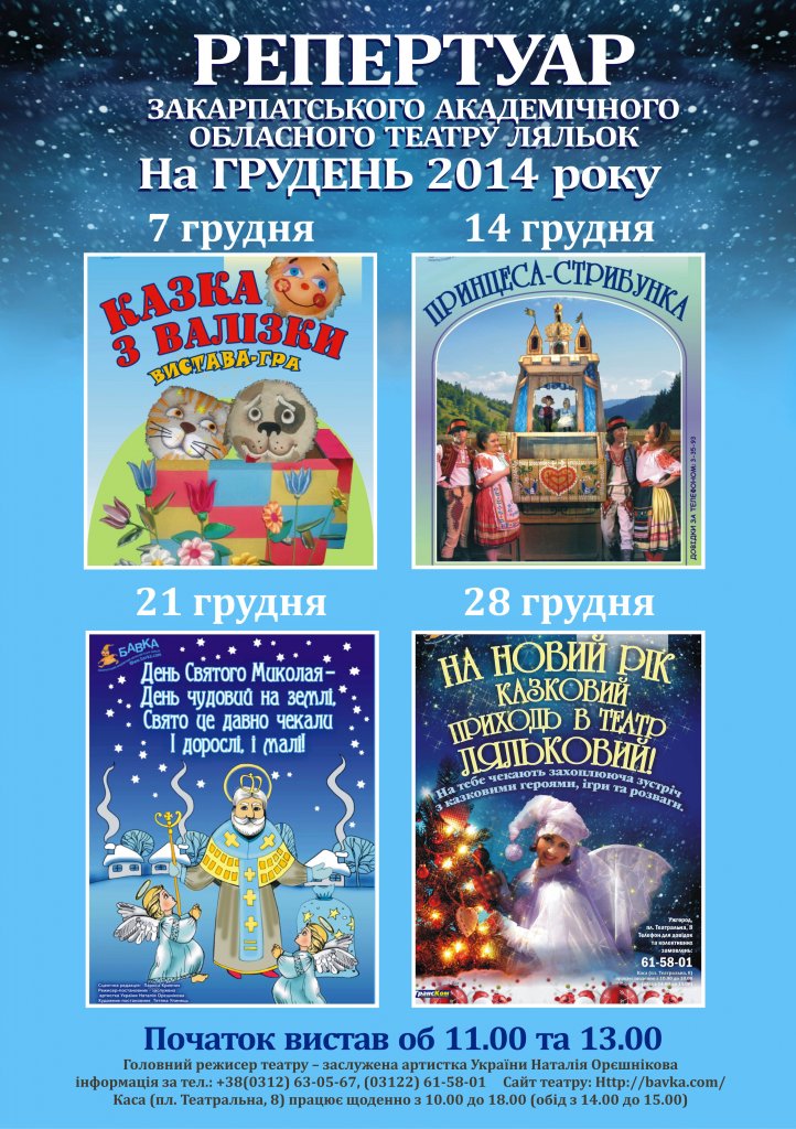 Репертуар театру ляльок „БАВКА” на ГРУДЕНЬ 2014 року