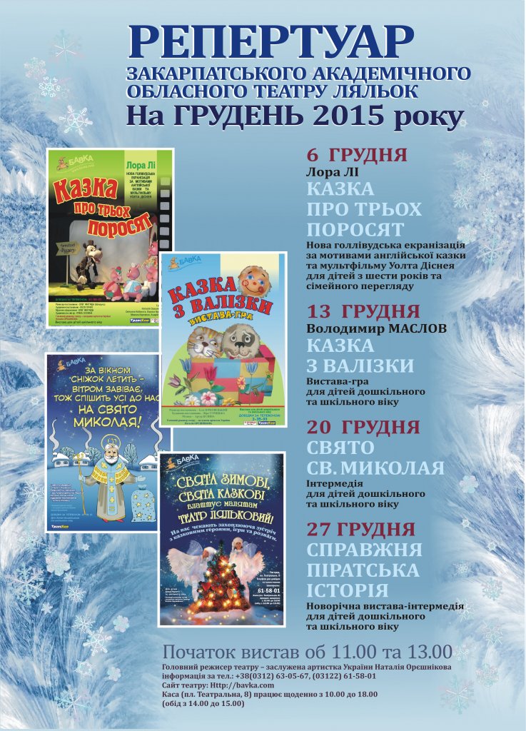 Репертуар театру ляльок „БАВКА” на грудень 2015 р