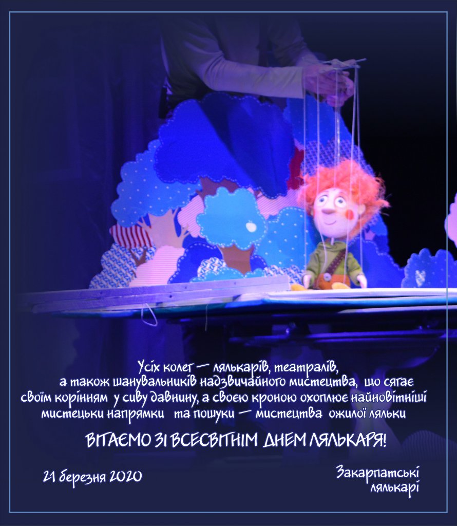 Перебуваючи на карантині, творчі працівники Закарпатського академічного обласного театру ляльок 21 березня віртуально поздоровили колег і причетних з Всесвітнім днем лялькаря, пораділи, трохи посумували. Адже зовсім не так планувалося провести