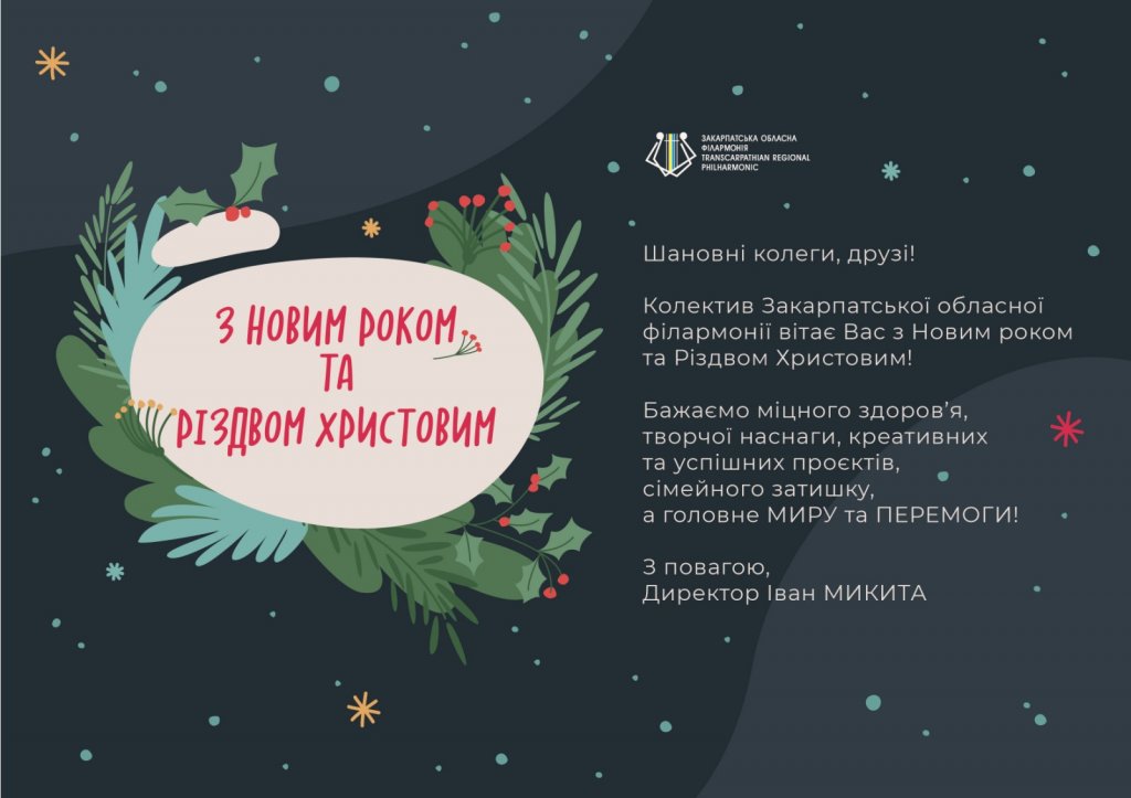 Вітаємо вас з прийдешніми святами – з Різдвом Христовим та Новим роком!