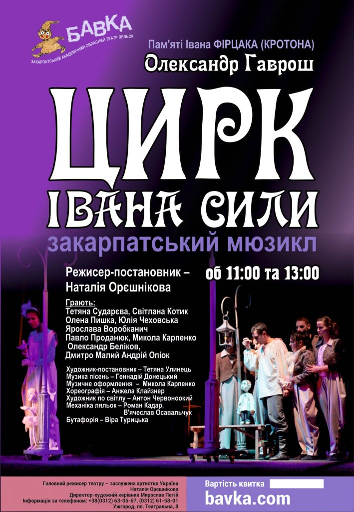 Закарпатський академічний обласний театр ляльок поставив на свої сцені п’єсу «Цирк Івана Сили» письменника з Ужгорода Олександра Гавроша, яка виборола першу премію в номінації «П’єса для дітей» літературного конкурсу «Коронація слова-2011».