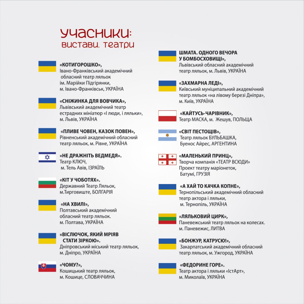 - вистава «ВАСИЛИНА» Тернопільський академічний обласний театр актора і ляльки - Тернопіль, УКРАЇНА «VASYLYNA» Ternopil Academic Regional Theatre of Actors and Puppets - Ternopil, UKRAINE;