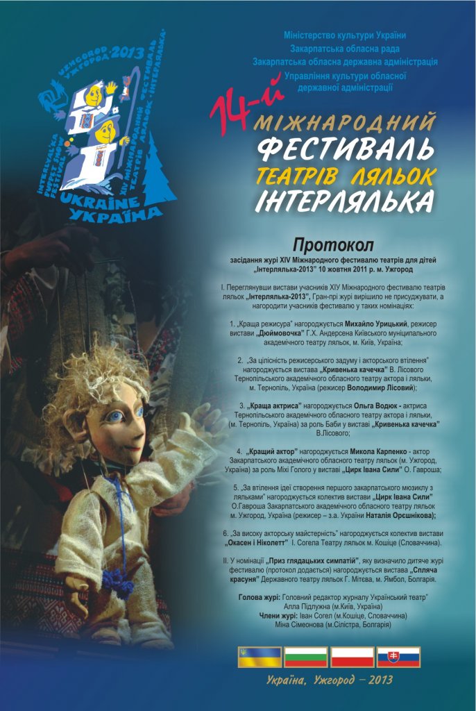 3 жовтня 2015 року в Ужгороді відбулося закриття ХV Міжнародного фестивалю театрів ляльок «Інтерлялька-2015».