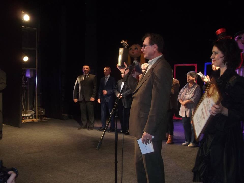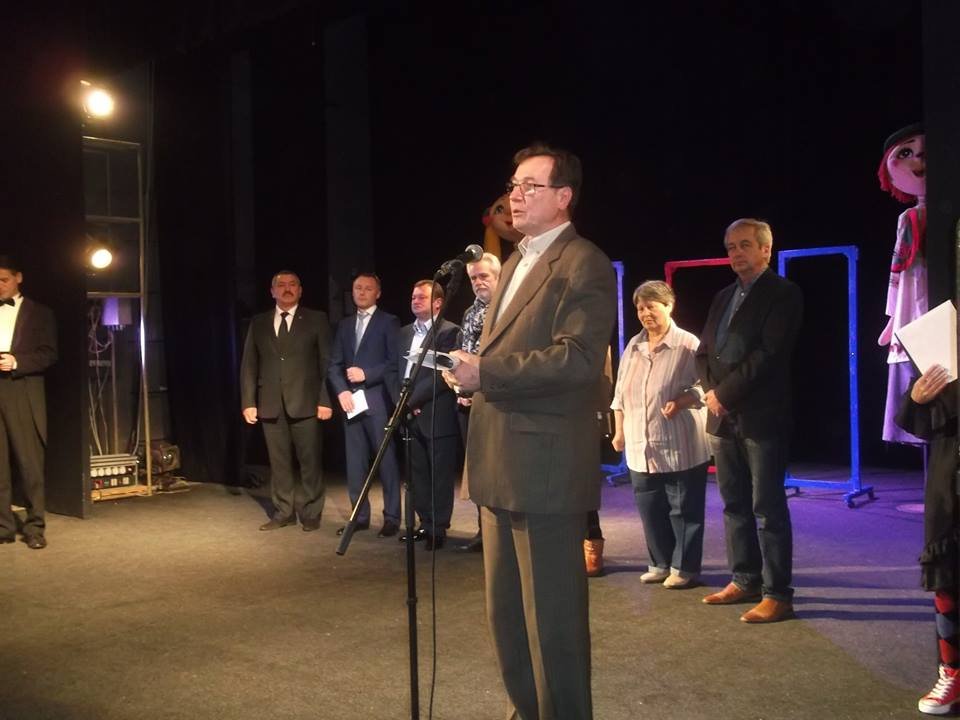 Під час урочистостей на сцені виступили директор Закарпатського академічного обласного театру ляльок Мирослав Йосипович Петій, заступник начальника управління культури облдержадміністрації Іван Іванович Канюка, який, зокрема, вручив директору Кошицького театру ляльок Паволу Грегорчаку почесну відзнаку управління на знак плідної багаторічної творчої співпраці. Також із привітанням виступила Дар’я Іванова, представник Українського Центру Міжнародної Спілки діячів театру ляльок UNIMA-УКРАЇНА (м. Київ).