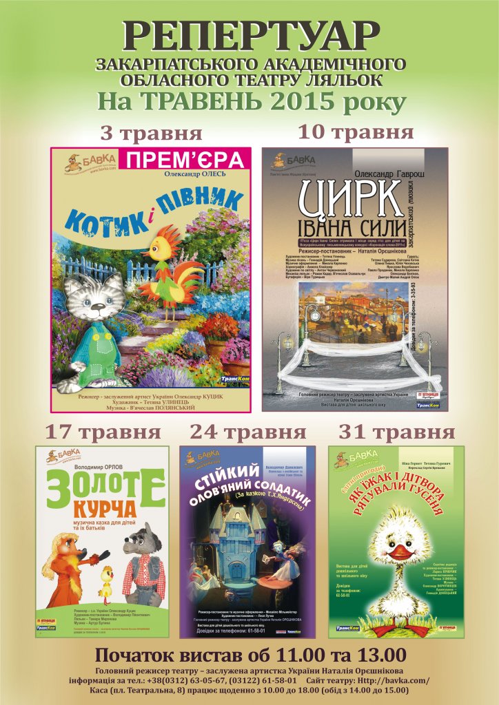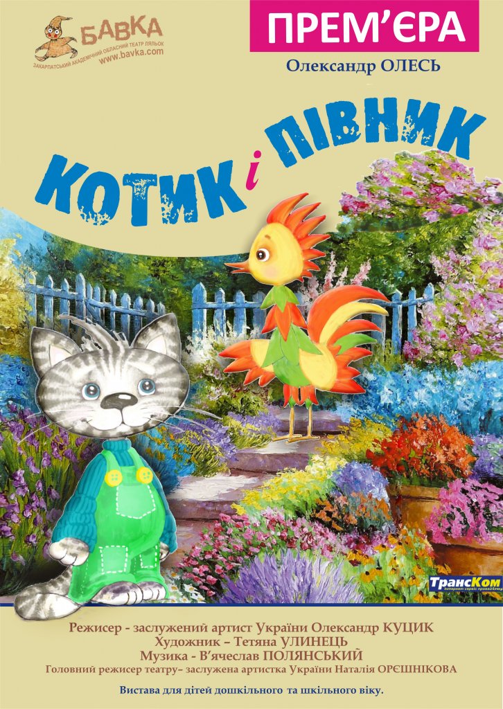 Вистава Закарпатського академічного обласного театру ляльок за п’єсою Олександра Олеся «КОТИК І ПІВНИК» - про взаємодопомогу та справжню дружбу, яка перевіряється в біді.