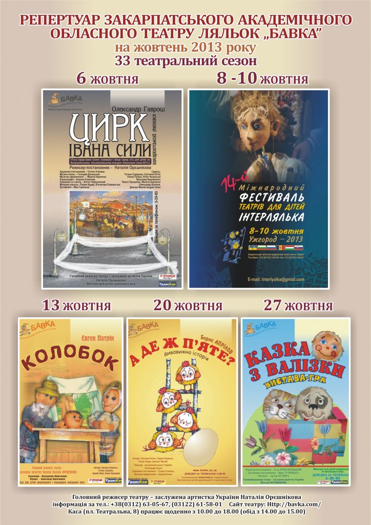 5. „За втілення ідеї створення першого закарпатського мюзиклу з ляльками” нагороджується колектив вистави „Цирк Івана Сили” О.Гавроша Закарпатського академічного обласного театру ляльок м. Ужгород, Україна (режисер – з.а. України Наталія Орєшнікова);